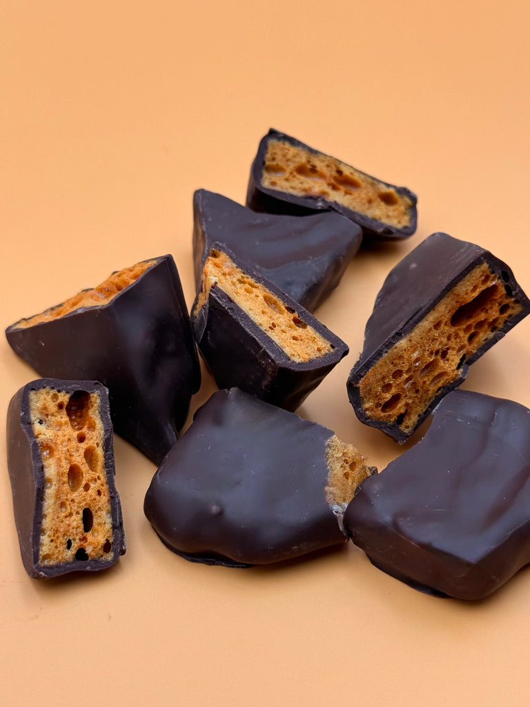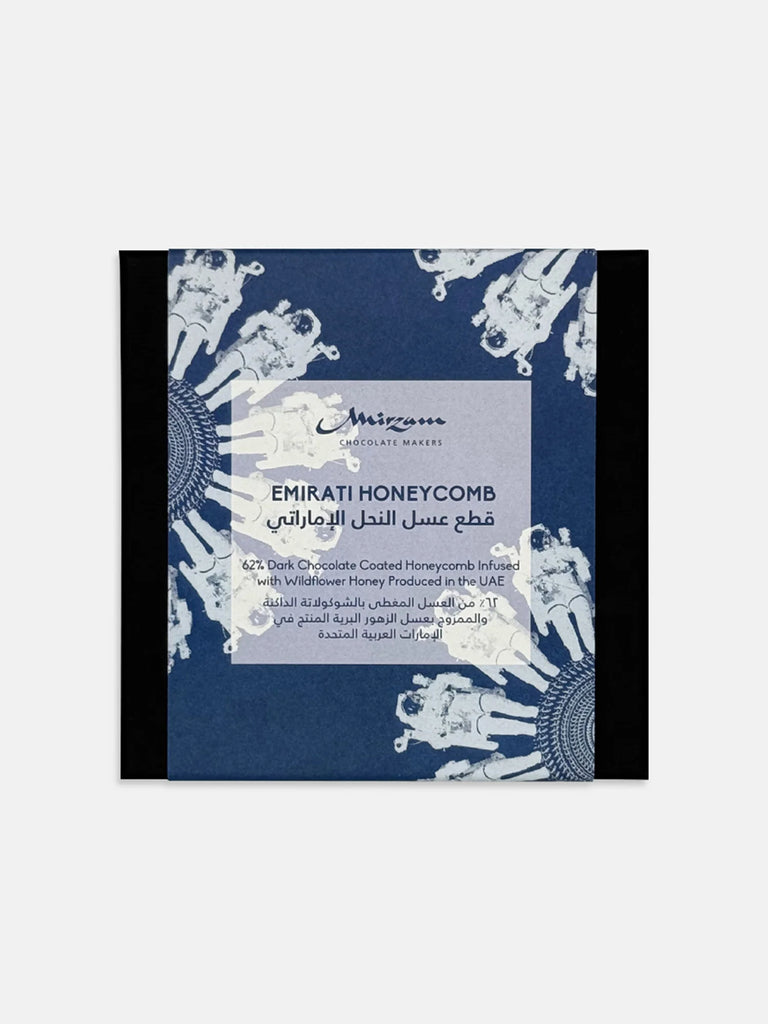 A favorite! Honeycomb made with freshly produced Emirati honey, cracked into delicious chunks and coated with our bean to bar produced single origin 62% dark chocolate.