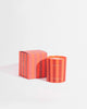 100% soy wax, with lead-free cotton wicks, and premium fragrance oils infused with essential oils. Housed in a festive holiday striped jar and matching gift box.